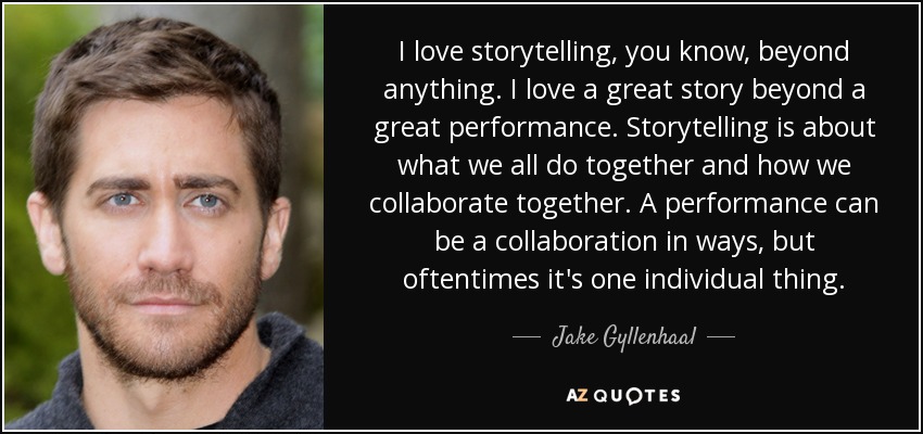 I love storytelling, you know, beyond anything. I love a great story beyond a great performance. Storytelling is about what we all do together and how we collaborate together. A performance can be a collaboration in ways, but oftentimes it's one individual thing.