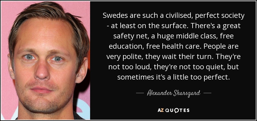 Swedes are such a civilised, perfect society - at least on the surface. There's a great safety net, a huge middle class, free education, free health care. People are very polite, they wait their turn. They're not too loud, they're not too quiet, but sometimes it's a little too perfect.