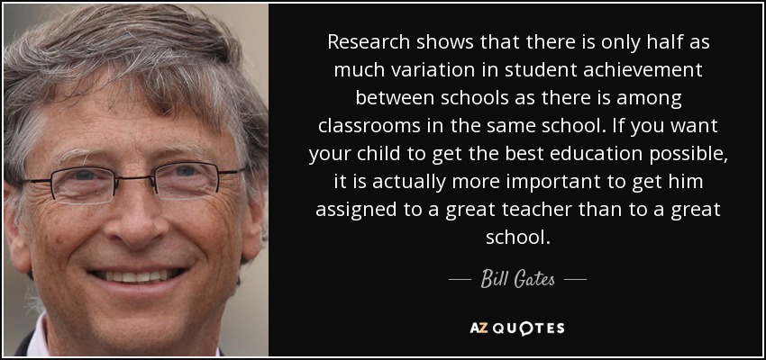 Research shows that there is only half as much variation in student achievement between schools as there is among classrooms in the same school. If you want your child to get the best education possible, it is actually more important to get him assigned to a great teacher than to a great school.