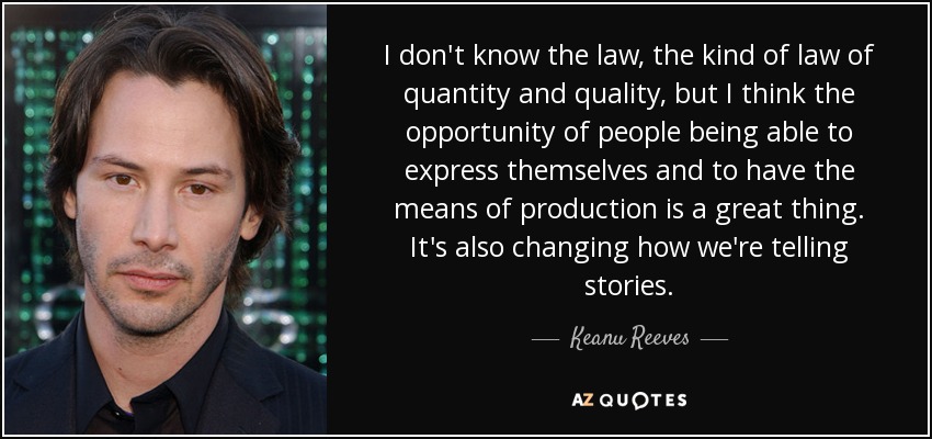 I don't know the law, the kind of law of quantity and quality, but I think the opportunity of people being able to express themselves and to have the means of production is a great thing. It's also changing how we're telling stories.