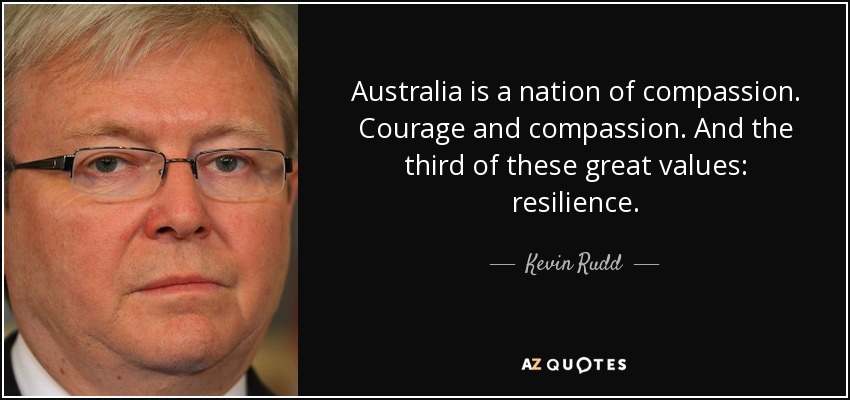 Australia is a nation of compassion. Courage and compassion. And the third of these great values: resilience.