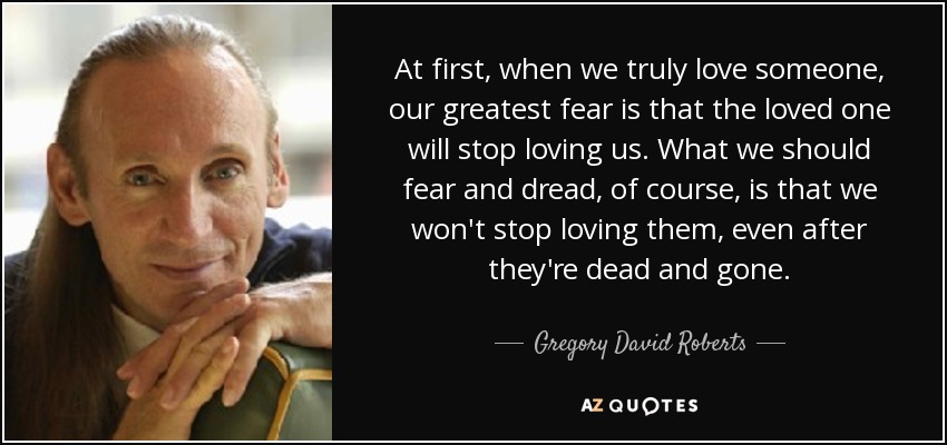 At first, when we truly love someone, our greatest fear is that the loved one will stop loving us. What we should fear and dread, of course, is that we won't stop loving them, even after they're dead and gone.