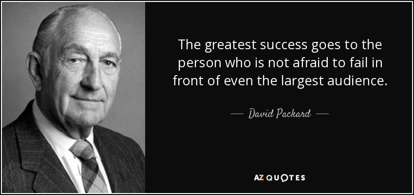 The greatest success goes to the person who is not afraid to fail in front of even the largest audience.