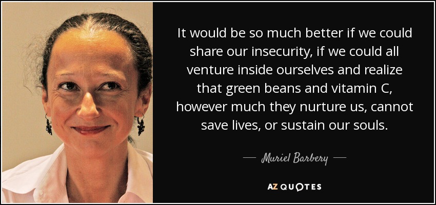 It would be so much better if we could share our insecurity, if we could all venture inside ourselves and realize that green beans and vitamin C, however much they nurture us, cannot save lives, or sustain our souls.