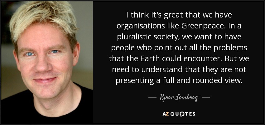 I think it's great that we have organisations like Greenpeace. In a pluralistic society, we want to have people who point out all the problems that the Earth could encounter. But we need to understand that they are not presenting a full and rounded view.