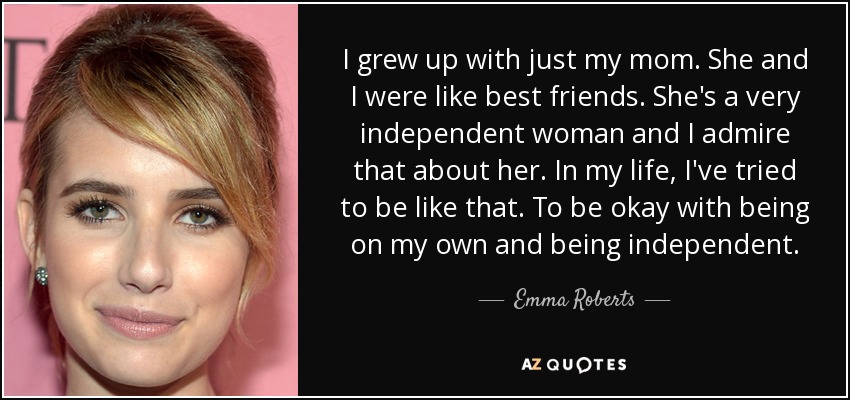 I grew up with just my mom. She and I were like best friends. She's a very independent woman and I admire that about her. In my life, I've tried to be like that. To be okay with being on my own and being independent.