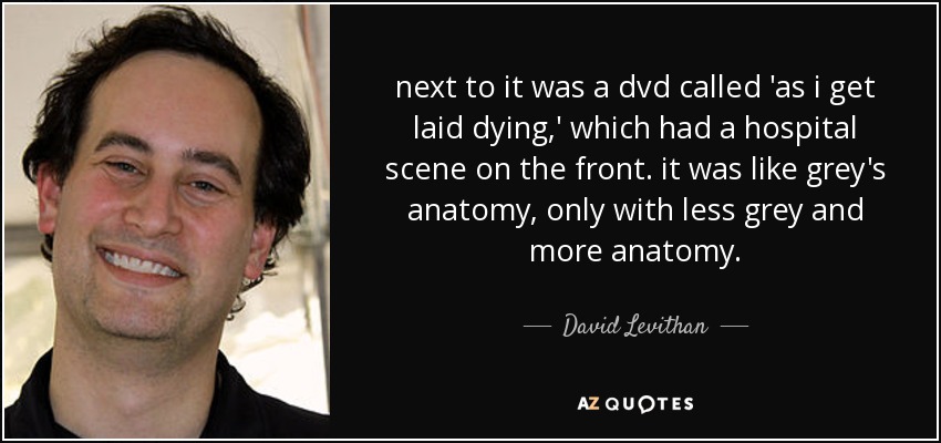 next to it was a dvd called 'as i get laid dying,' which had a hospital scene on the front. it was like grey's anatomy, only with less grey and more anatomy.