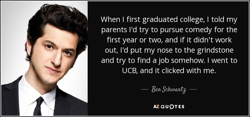 When I first graduated college, I told my parents I'd try to pursue comedy for the first year or two, and if it didn't work out, I'd put my nose to the grindstone and try to find a job somehow. I went to UCB, and it clicked with me.