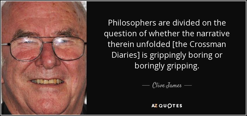 Philosophers are divided on the question of whether the narrative therein unfolded [the Crossman Diaries] is grippingly boring or boringly gripping.