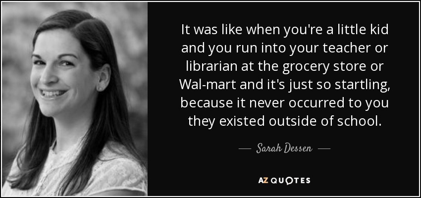 It was like when you're a little kid and you run into your teacher or librarian at the grocery store or Wal-mart and it's just so startling, because it never occurred to you they existed outside of school.