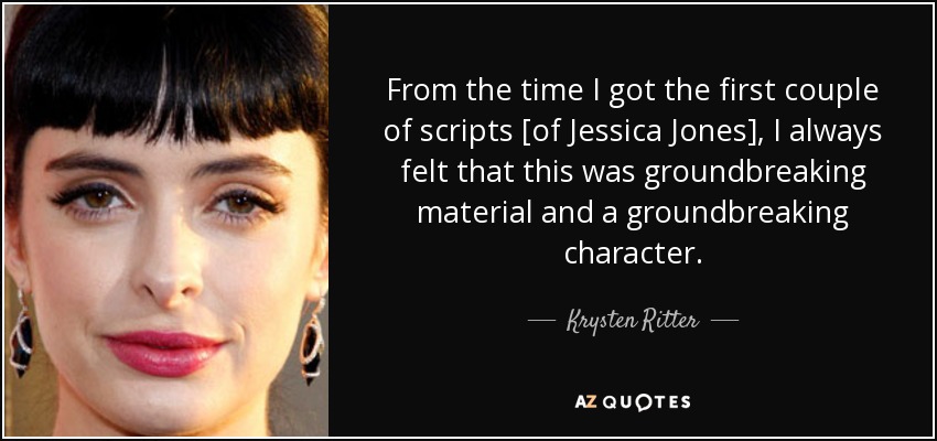 From the time I got the first couple of scripts [of Jessica Jones], I always felt that this was groundbreaking material and a groundbreaking character.