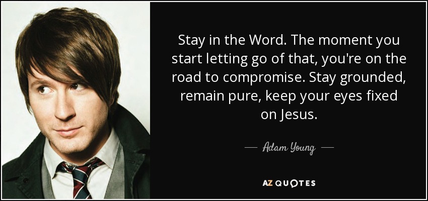Stay in the Word. The moment you start letting go of that, you're on the road to compromise. Stay grounded, remain pure, keep your eyes fixed on Jesus.