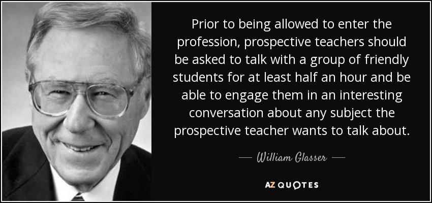 Prior to being allowed to enter the profession, prospective teachers should be asked to talk with a group of friendly students for at least half an hour and be able to engage them in an interesting conversation about any subject the prospective teacher wants to talk about.