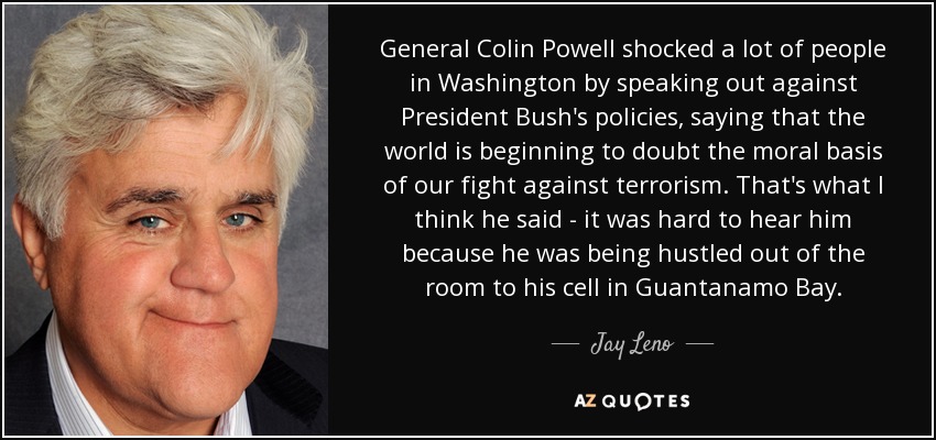 General Colin Powell shocked a lot of people in Washington by speaking out against President Bush's policies, saying that the world is beginning to doubt the moral basis of our fight against terrorism. That's what I think he said - it was hard to hear him because he was being hustled out of the room to his cell in Guantanamo Bay.