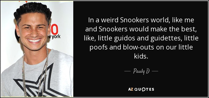 In a weird Snookers world, like me and Snookers would make the best, like, little guidos and guidettes, little poofs and blow-outs on our little kids.