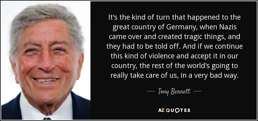 It's the kind of turn that happened to the great country of Germany, when Nazis came over and created tragic things, and they had to be told off. And if we continue this kind of violence and accept it in our country, the rest of the world's going to really take care of us, in a very bad way.