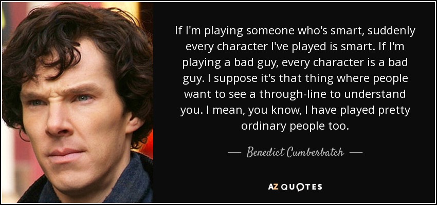 If I'm playing someone who's smart, suddenly every character I've played is smart. If I'm playing a bad guy, every character is a bad guy. I suppose it's that thing where people want to see a through-line to understand you. I mean, you know, I have played pretty ordinary people too.
