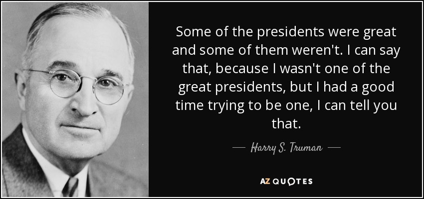 Some of the presidents were great and some of them weren't. I can say that, because I wasn't one of the great presidents, but I had a good time trying to be one, I can tell you that.