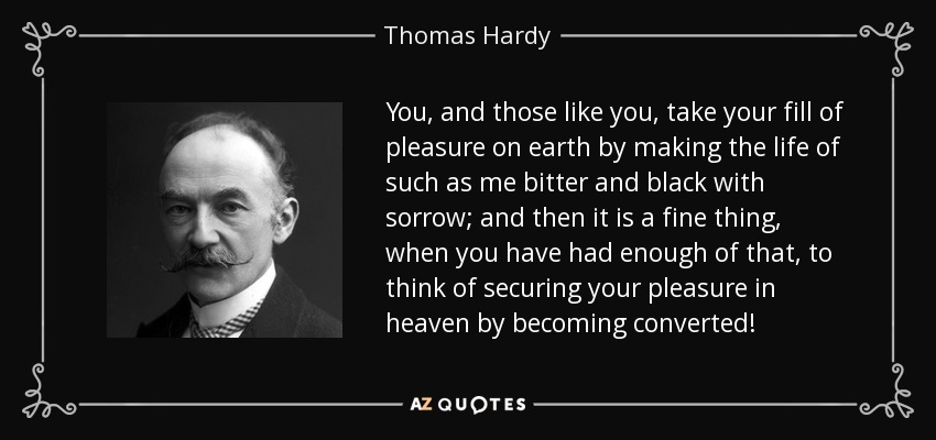 You, and those like you, take your fill of pleasure on earth by making the life of such as me bitter and black with sorrow; and then it is a fine thing, when you have had enough of that, to think of securing your pleasure in heaven by becoming converted!