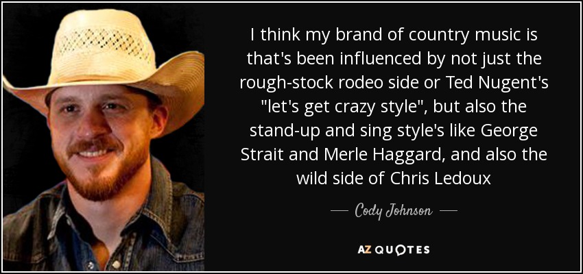 I think my brand of country music is that's been influenced by not just the rough-stock rodeo side or Ted Nugent's "let's get crazy style", but also the stand-up and sing style's like George Strait and Merle Haggard, and also the wild side of Chris Ledoux