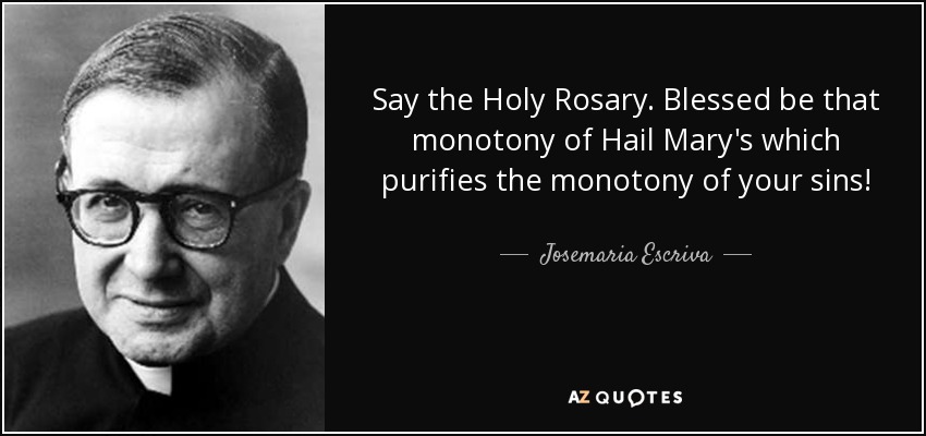 Say the Holy Rosary. Blessed be that monotony of Hail Mary's which purifies the monotony of your sins!