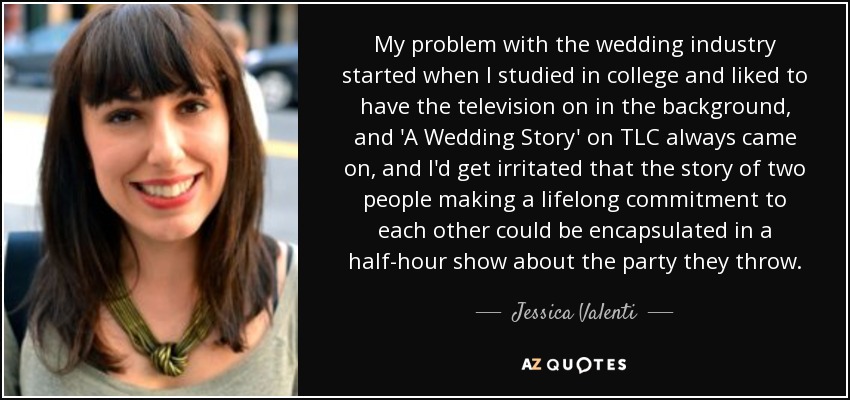 My problem with the wedding industry started when I studied in college and liked to have the television on in the background, and 'A Wedding Story' on TLC always came on, and I'd get irritated that the story of two people making a lifelong commitment to each other could be encapsulated in a half-hour show about the party they throw.