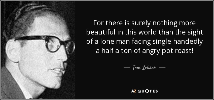 For there is surely nothing more beautiful in this world than the sight of a lone man facing single-handedly a half a ton of angry pot roast!