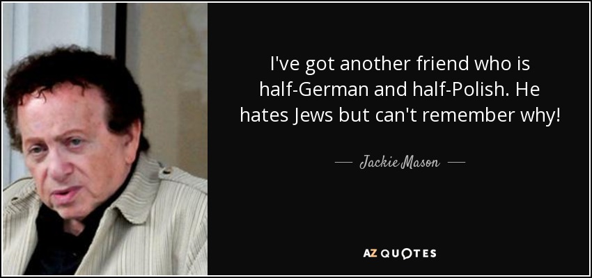 I've got another friend who is half-German and half-Polish. He hates Jews but can't remember why!