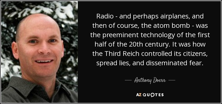 Radio - and perhaps airplanes, and then of course, the atom bomb - was the preeminent technology of the first half of the 20th century. It was how the Third Reich controlled its citizens, spread lies, and disseminated fear.