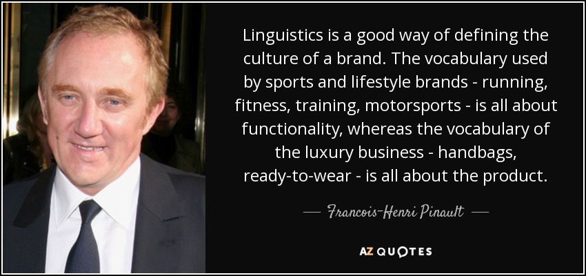 Linguistics is a good way of defining the culture of a brand. The vocabulary used by sports and lifestyle brands - running, fitness, training, motorsports - is all about functionality, whereas the vocabulary of the luxury business - handbags, ready-to-wear - is all about the product.