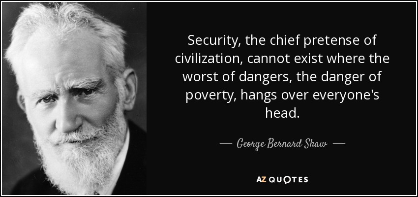 Security, the chief pretense of civilization, cannot exist where the worst of dangers, the danger of poverty, hangs over everyone's head.