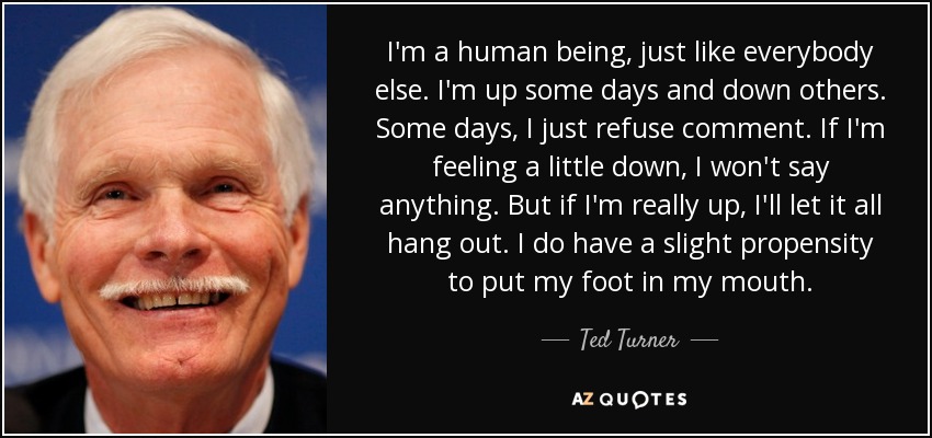 I'm a human being, just like everybody else. I'm up some days and down others. Some days, I just refuse comment. If I'm feeling a little down, I won't say anything. But if I'm really up, I'll let it all hang out. I do have a slight propensity to put my foot in my mouth.