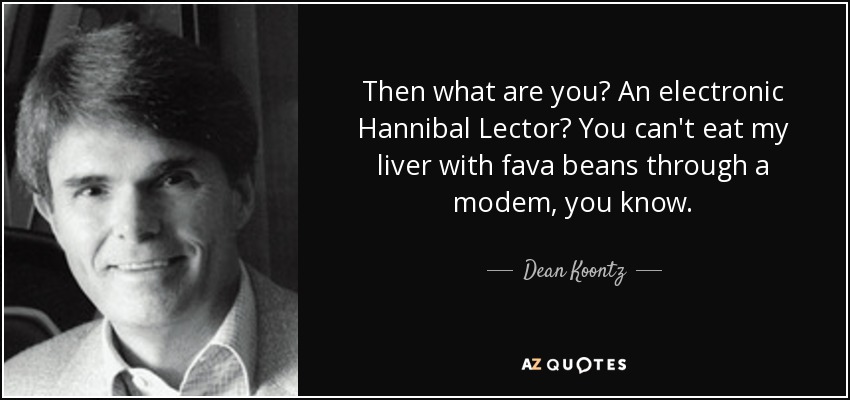 Then what are you? An electronic Hannibal Lector? You can't eat my liver with fava beans through a modem, you know.