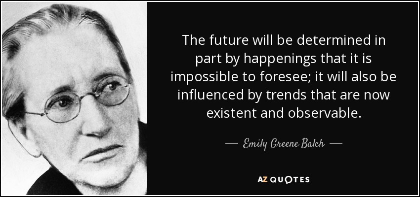 The future will be determined in part by happenings that it is impossible to foresee; it will also be influenced by trends that are now existent and observable.