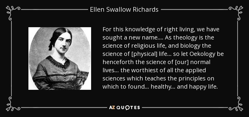 For this knowledge of right living, we have sought a new name... . As theology is the science of religious life, and biology the science of [physical] life ... so let Oekology be henceforth the science of [our] normal lives ... the worthiest of all the applied sciences which teaches the principles on which to found... healthy... and happy life.