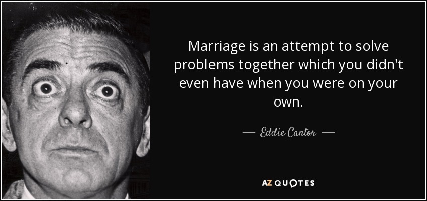 Marriage is an attempt to solve problems together which you didn't even have when you were on your own.