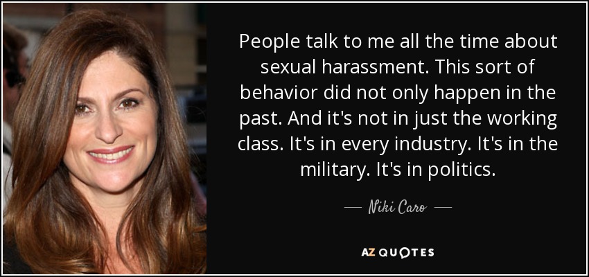 People talk to me all the time about sexual harassment. This sort of behavior did not only happen in the past. And it's not in just the working class. It's in every industry. It's in the military. It's in politics.