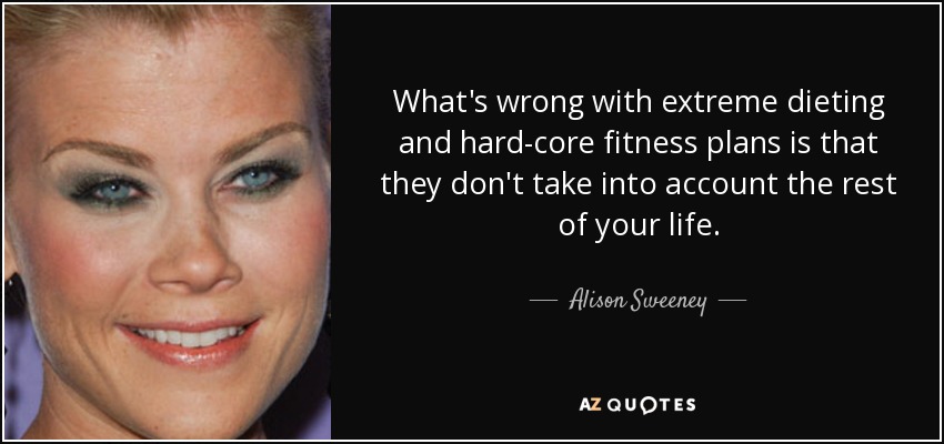 What's wrong with extreme dieting and hard-core fitness plans is that they don't take into account the rest of your life.