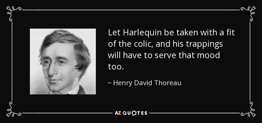 Let Harlequin be taken with a fit of the colic, and his trappings will have to serve that mood too.