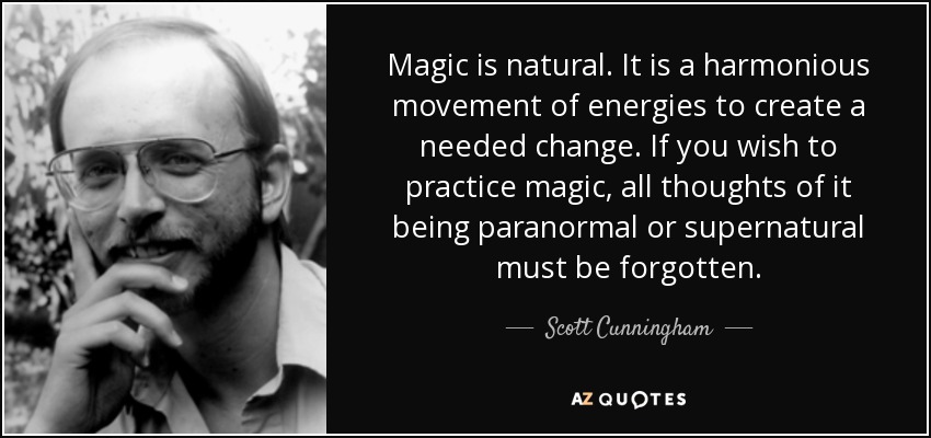 Magic is natural. It is a harmonious movement of energies to create a needed change. If you wish to practice magic, all thoughts of it being paranormal or supernatural must be forgotten.