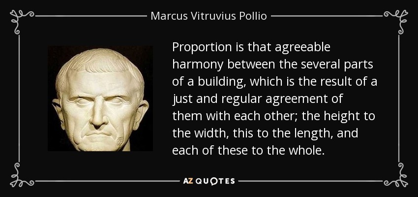 Proportion is that agreeable harmony between the several parts of a building, which is the result of a just and regular agreement of them with each other; the height to the width, this to the length, and each of these to the whole.