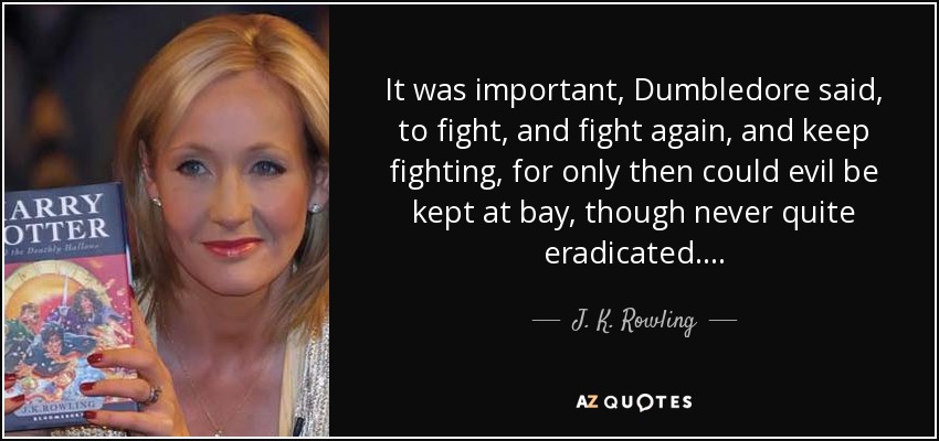 It was important, Dumbledore said, to fight, and fight again, and keep fighting, for only then could evil be kept at bay, though never quite eradicated. . . .