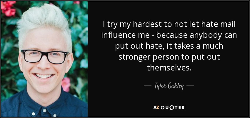 I try my hardest to not let hate mail influence me - because anybody can put out hate, it takes a much stronger person to put out themselves.
