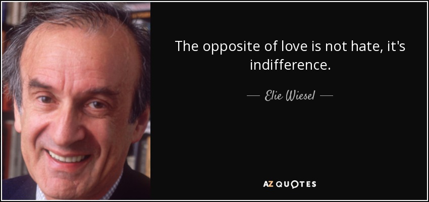 The opposite of love is not hate, it's indifference. The opposite of art is not ugliness, it's indifference. The opposite of faith is not heresy, it's indifference. And the opposite of life is not death, it's indifference.