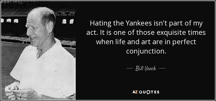 Hating the Yankees isn't part of my act. It is one of those exquisite times when life and art are in perfect conjunction.