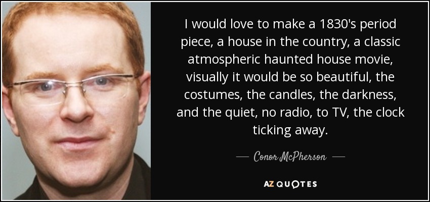 I would love to make a 1830's period piece, a house in the country, a classic atmospheric haunted house movie, visually it would be so beautiful, the costumes, the candles, the darkness, and the quiet, no radio, to TV, the clock ticking away.