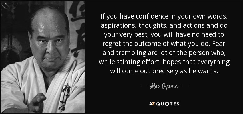 If you have confidence in your own words, aspirations, thoughts, and actions and do your very best, you will have no need to regret the outcome of what you do. Fear and trembling are lot of the person who, while stinting effort, hopes that everything will come out precisely as he wants.