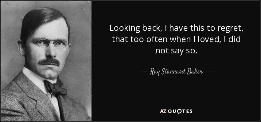 Looking back, I have this to regret, that too often when I loved, I did not say so.