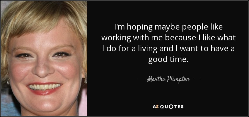 I'm hoping maybe people like working with me because I like what I do for a living and I want to have a good time.