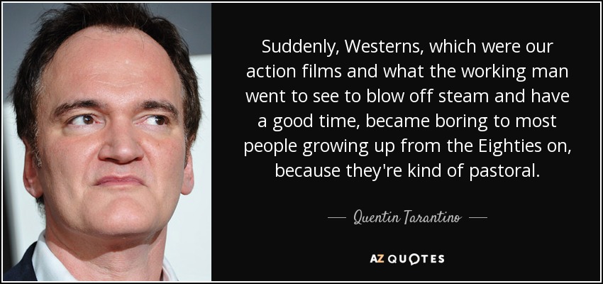 Suddenly, Westerns, which were our action films and what the working man went to see to blow off steam and have a good time, became boring to most people growing up from the Eighties on, because they're kind of pastoral.